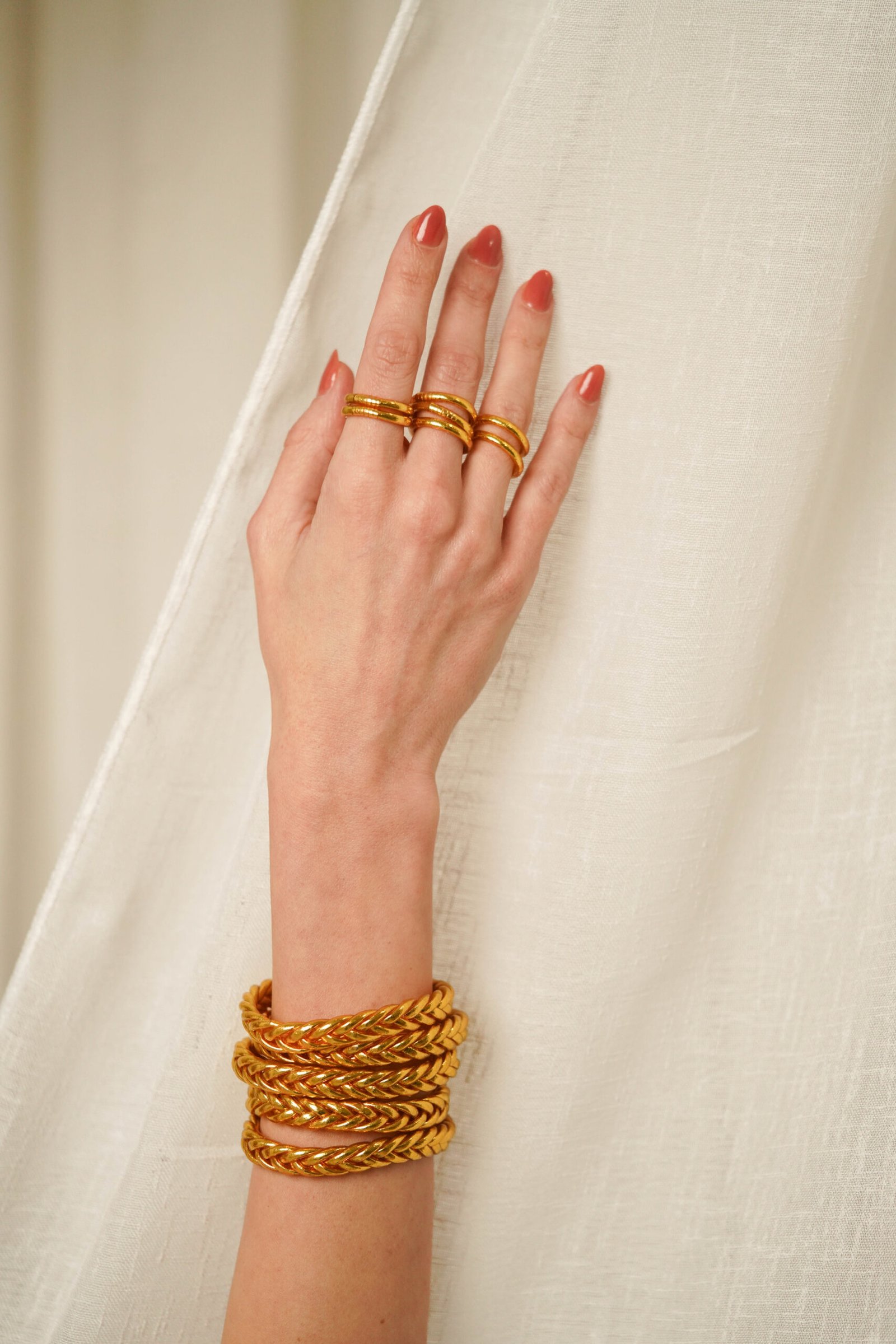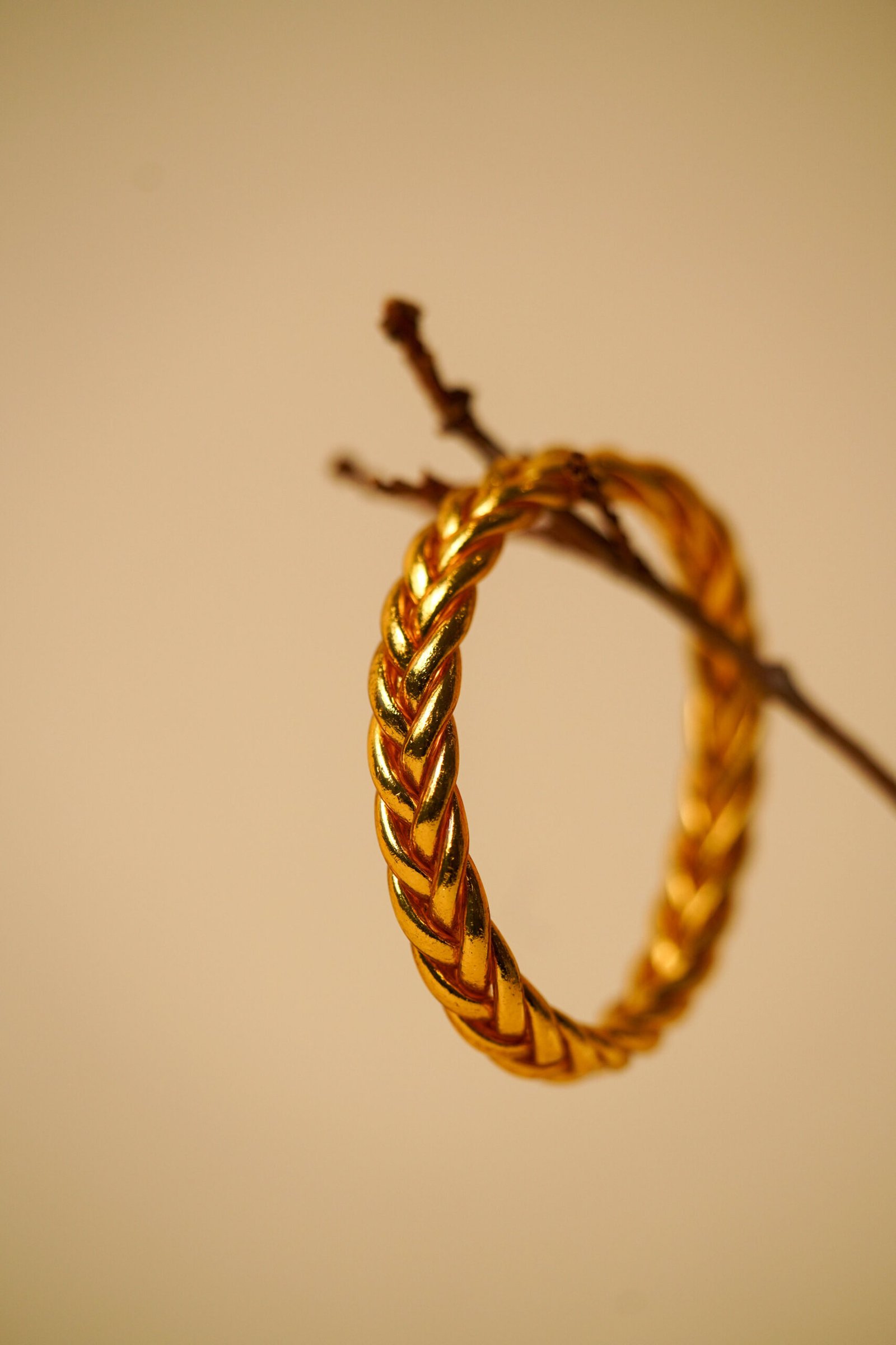 The bangle is made of a flexible plastic tube filled with gold and silver leaf foil and seal with a connector.