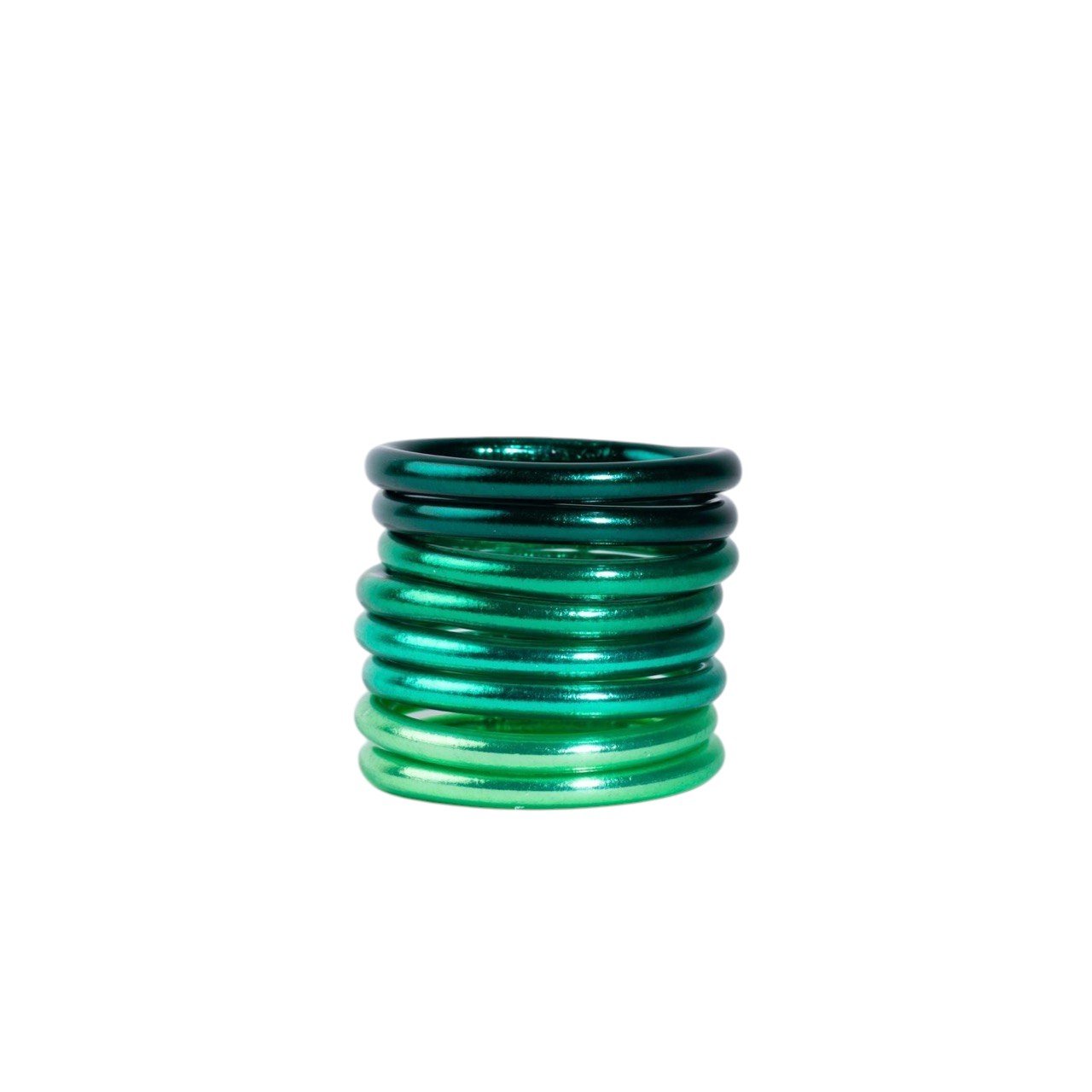Includes 2 bangles in each color: Dark Green, Leave Green, Emerald and Mint.