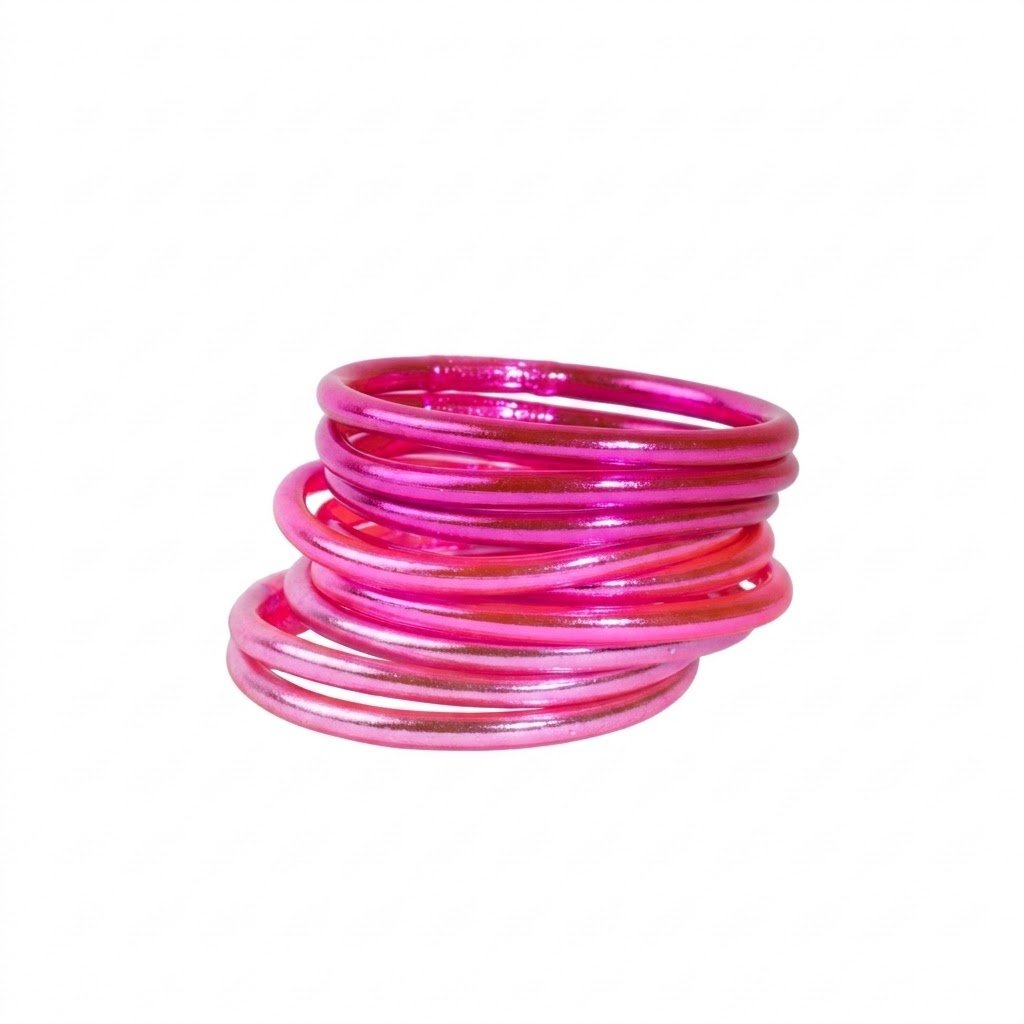 Includes 3 bangles in each color: Fluo Pink, Light Pink and Fuchsia.